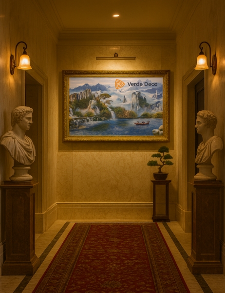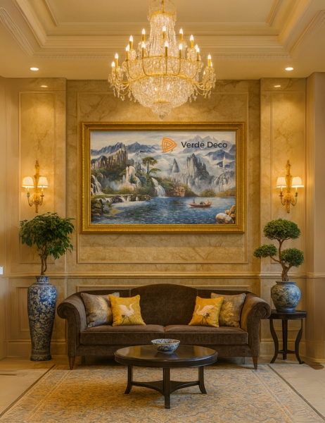 Bức tranh không chỉ là tác phẩm trang trí tinh tế, làm nổi bật vẻ sang trọng và thư thái cho không gian phòng khách, văn phòng, hay nhà hàng mà còn ẩn chứa thông điệp phong thủy sâu sắc: núi tượng trưng cho sự vững chãi, nước đại diện cho tài lộc và sự hanh thông. Treo tranh “Sơn thủy hữu tình” giúp không gian trở nên hài hòa, mang đến cảm giác bình an và thu hút may mắn cho gia chủ.